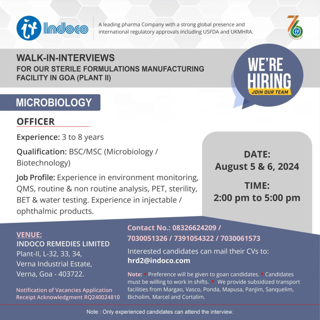 Interested candidates can mail their CVs to: hrd2@indoco.com
