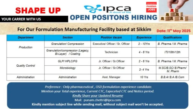 - Qualifications B.B.A/B.A/B.Com/M.Sc/B.Sc/B.Pharm/M. Pharm/ITI/10th/12th