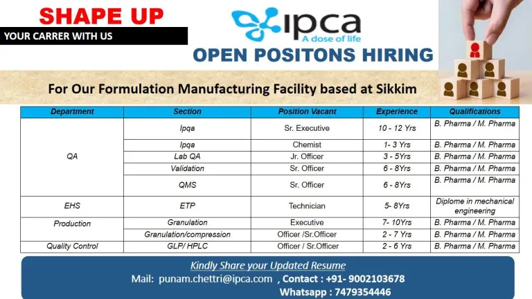 - Mail: punam.chettri@ipca.com, Contact: +91-9002103678