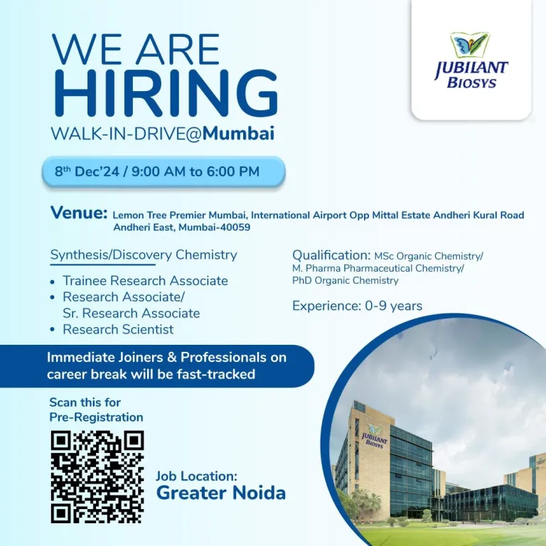 - Qualification: M.Sc Organic Chemistry / M.Pharm Pharmaceutical Chemistry/ Ph.D Organic Chemistry.