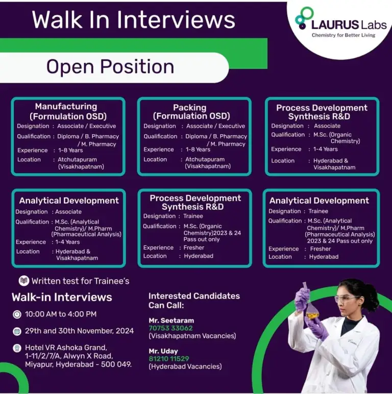 Job Location: Laurus Labs Ltd – Atchutapuram Unit-2. Visakhapatnam, Andhra Pradesh