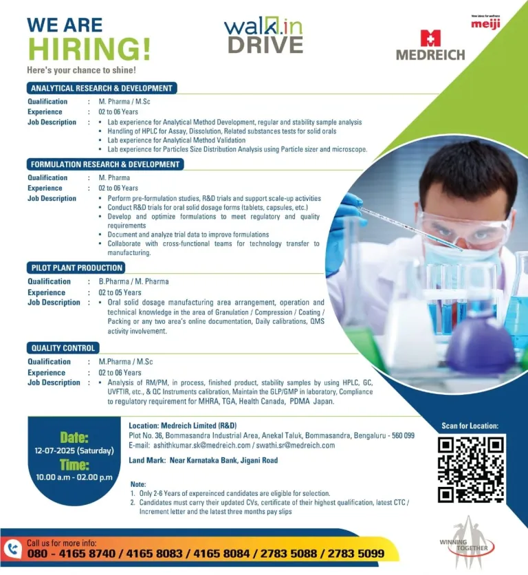 - Location: Medreich Limited (R&D), Bommasandra, Bangalore