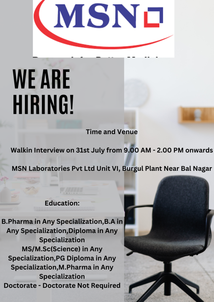 Walkin Interview on 31st July from 9.00 AM – 2.00 PM onwards