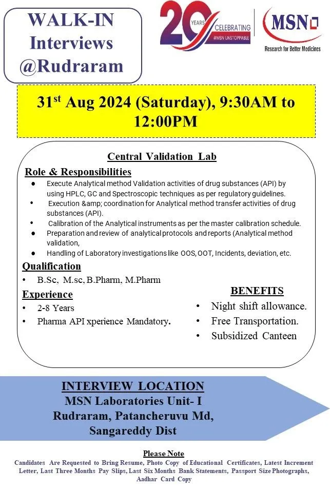 - Location: MSN Laboratories Unit-I, Rudraram, Patancheruvu Md,