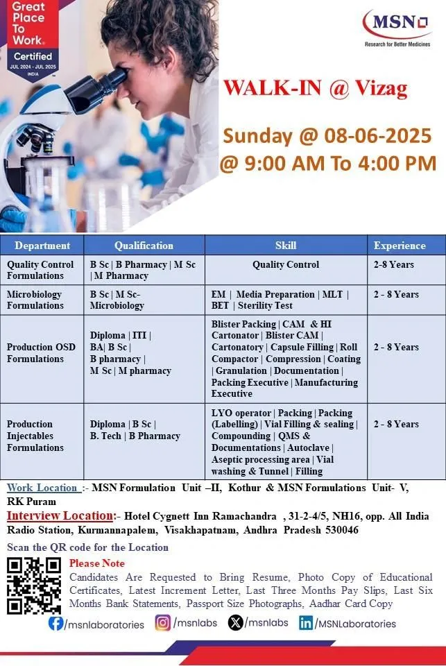 - Qualification: -ITI | BA | Diploma | B Com | BSC | B Pharmacy | BSC Microbiology | MSC Microbiology/Msc|Mpharm