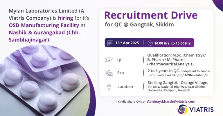 VIATRIS (Mylan Laboratories Limited), is a new kind of healthcare Company, committed to providing access to medicines, advancing sustainable operations developing innovative solutions, and leveraging our collective expertise to improve patient outcomes.