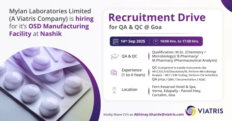 • Candidate who have faced regulatory Audits like FDA & MHRA Audit will be preferred.