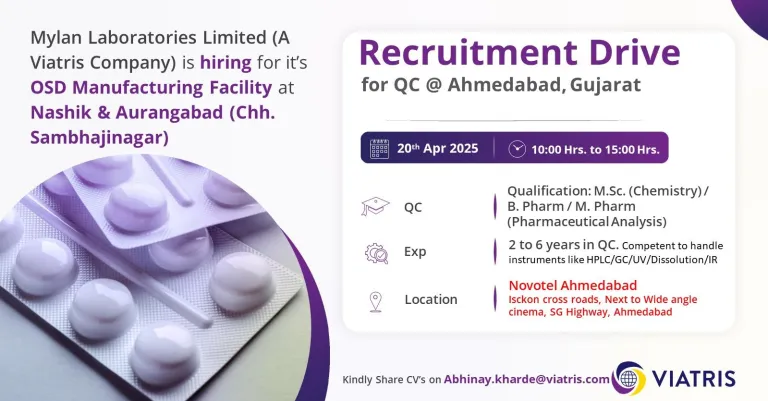 VIATRIS (Mylan Laboratories Limited), is a new kind of healthcare Company, committed to providing access to medicines, advancing sustainable operations developing innovative solutions, and leveraging our collective expertise to improve patient outcomes.