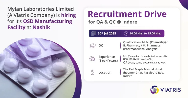 - Qualification: M.Sc. (Chemistry) / B. Pharm / M. Pharm (Pharmaceutical Analysis)