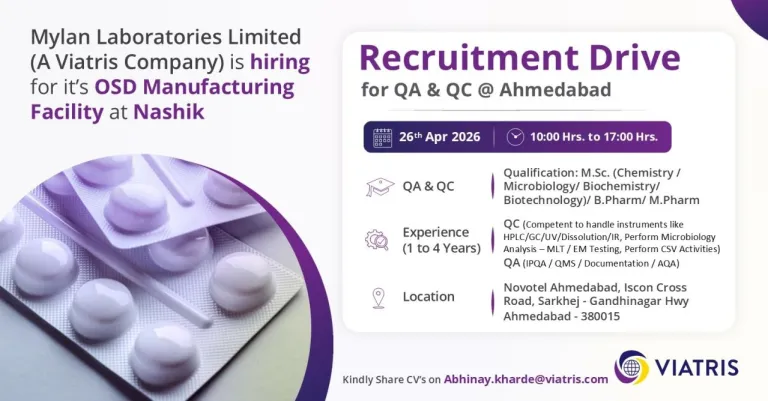 Education: M.Sc. / B. Pharmacy / M. Pharmacy