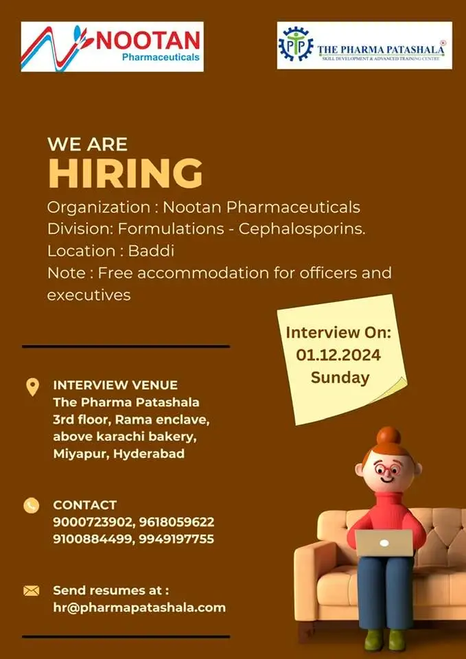 - Qualification: B.Sc, M.Sc, B.Pharm, M.Pharm, D.Pharm, ITI, Diploma
