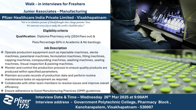 VENUE: Pfizer Healthcare India Private Limited – Visakhapatnam.