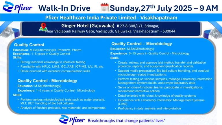 - Education: M.Sc(Chemistry)/B. Pharm/M. Pharm