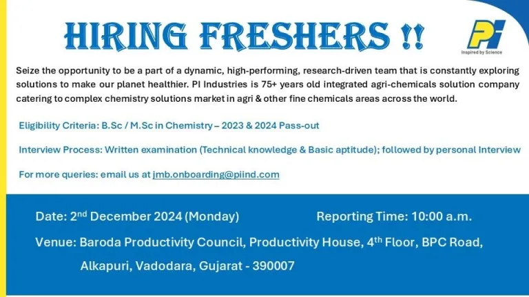 – Have completed a BSc or MSc in Chemistry 2023 & 2024 Pass-out.