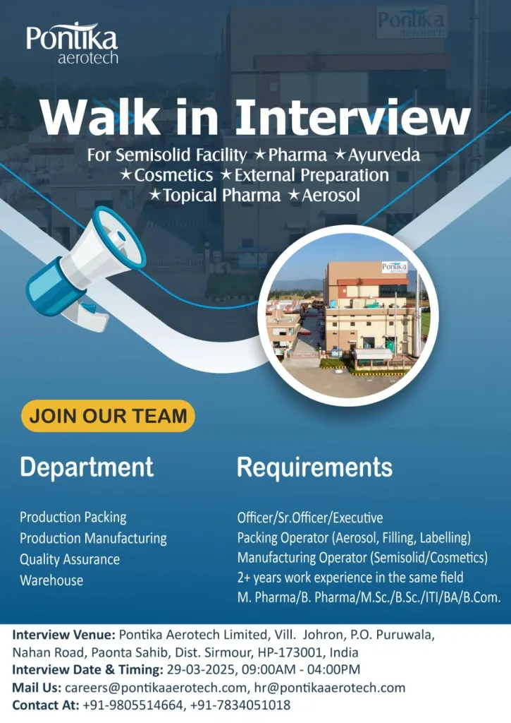 - Venue: Pontika Aerotech Limited, Vill. Johron, P.O. Puruwala, Nahan Road, Paonta Sahib, Dist. Sirmour, Himachal Pradesh