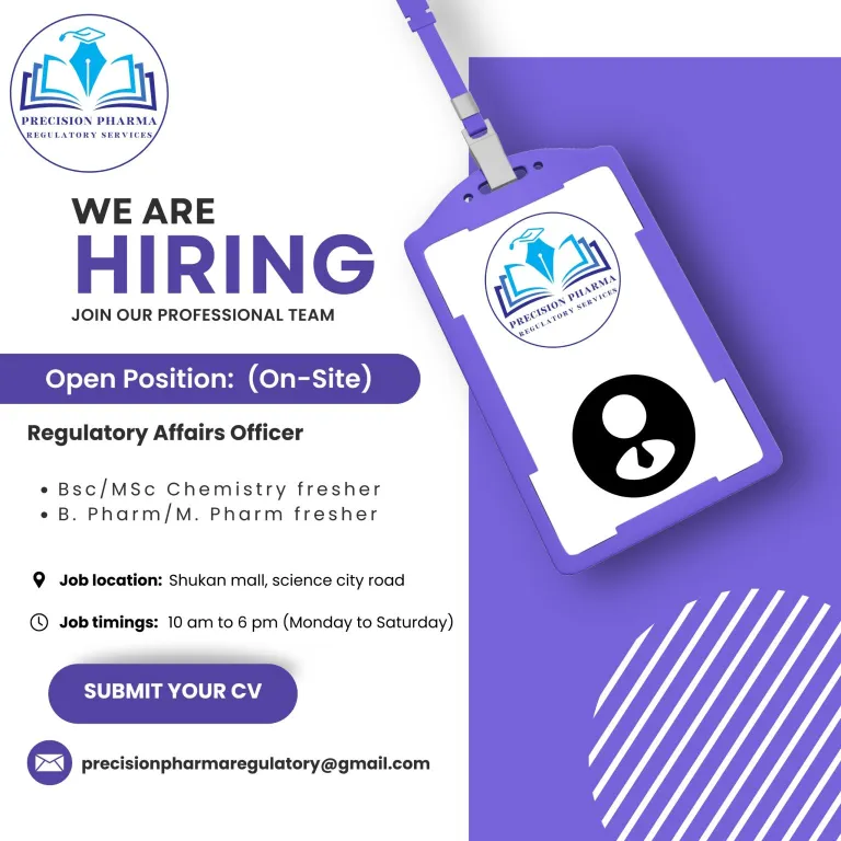 - Interested candidates can send CV to precisionpharmaregulatory@gmail.com