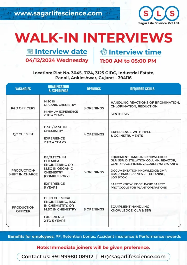 Sagar Life Sciences Pvt. Ltd was established with an aim to promote quality products like Pharmaceutical Drug Intermediates. We are a Gujarat, India based company engaged in this business. Globally noted for our high purity chemicals and bulk drugs etc., we have become a foremost choice for many industrial sectors such as pharmaceutical, cosmetic, research organization, and more.