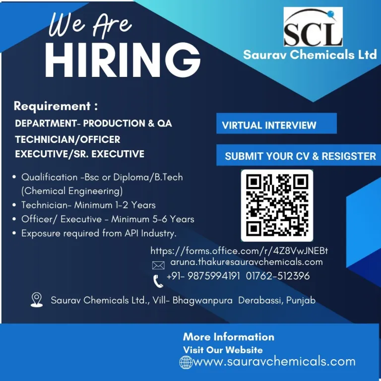 - Kindly share your updated resume via email at: aruna.thakur@sauravchemicals.com