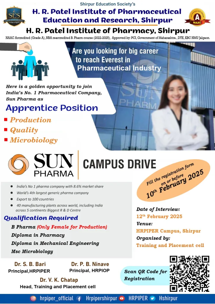 Sun Pharma is the fourth largest specialty generic pharmaceutical company in the world. We provide high-quality, affordable medicines trusted by healthcare professionals and patients in over 150 countries. It is also India’s largest, most trusted and most valuable pharmaceutical company by market capitalization. To keep pace with our growth plan we require young and energetic professionals for our Multiple Locations.