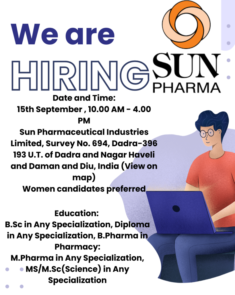 Walk-in interview For Sun Pharmaceutical Industries Limited, Dadra