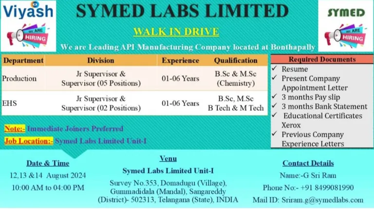 - Venue: SYMED LABS LIMITED UNIT-I