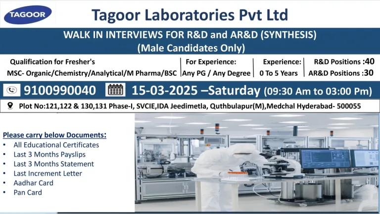 - Qualification: MSC-Organic/Chemistry/Analytical/M Pharma/BSC (For Freshers)