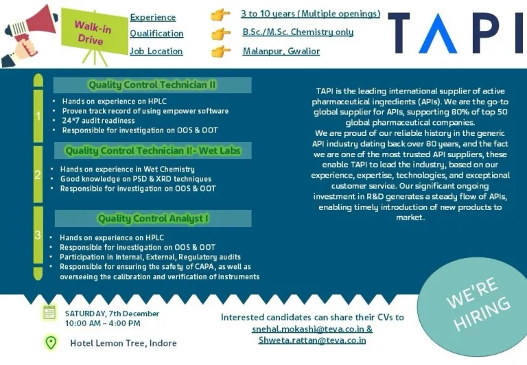 Interested candidates can share their CVs to snehal.mokashi@teva.co.in & Shweta.rattan@teva.co.in