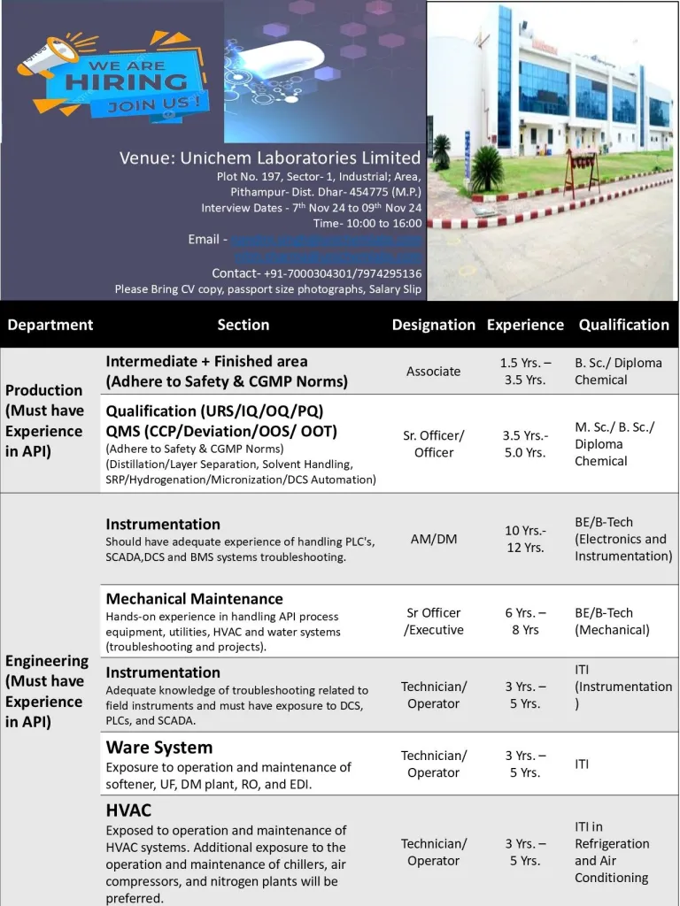 - Venue: – Unichem Laboratories Limited, Plot No. 197, Sector-I, Industrial Area, Pithampur- Distt. Dhar- 454775