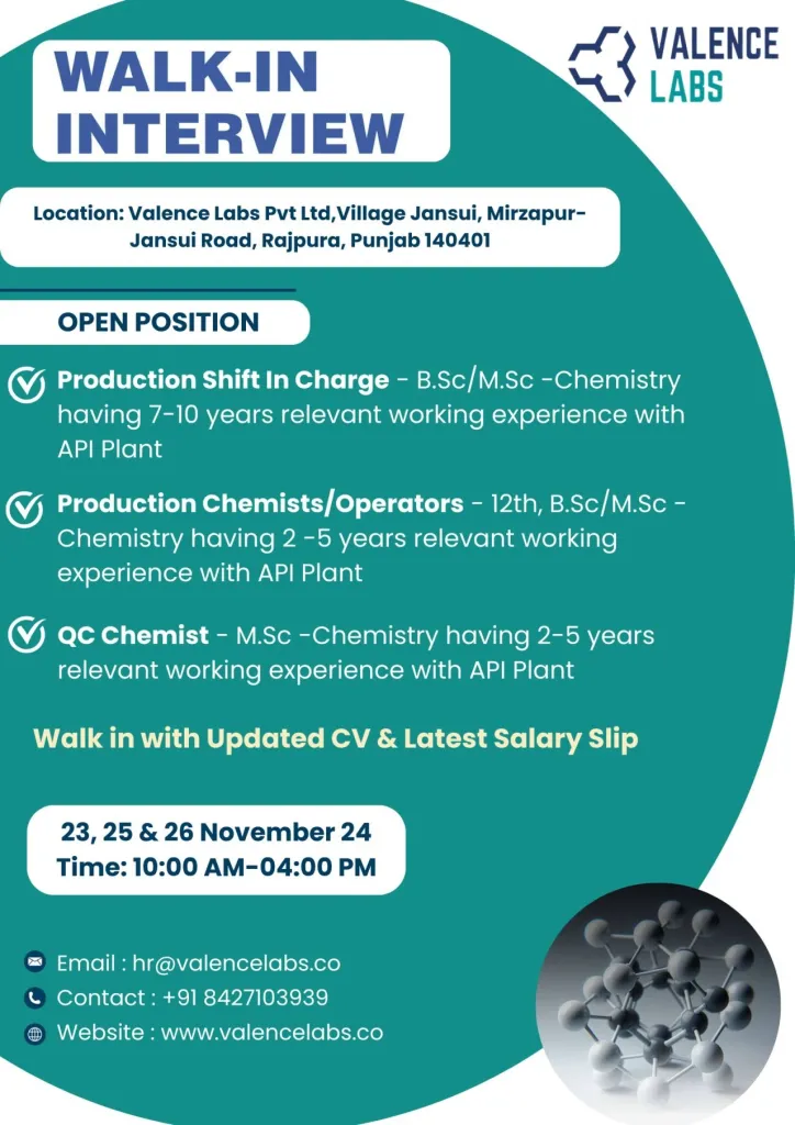 Valence Labs is a research-driven pharmaceutical API company dedicated to working at the forefront of chemical and pharmaceutical innovation. Valence embarked on a greenfield project focused on the production of APIs and advanced intermediates, situated within a 21 acres (85000 square meters) site at Rajpura, Punjab, India.