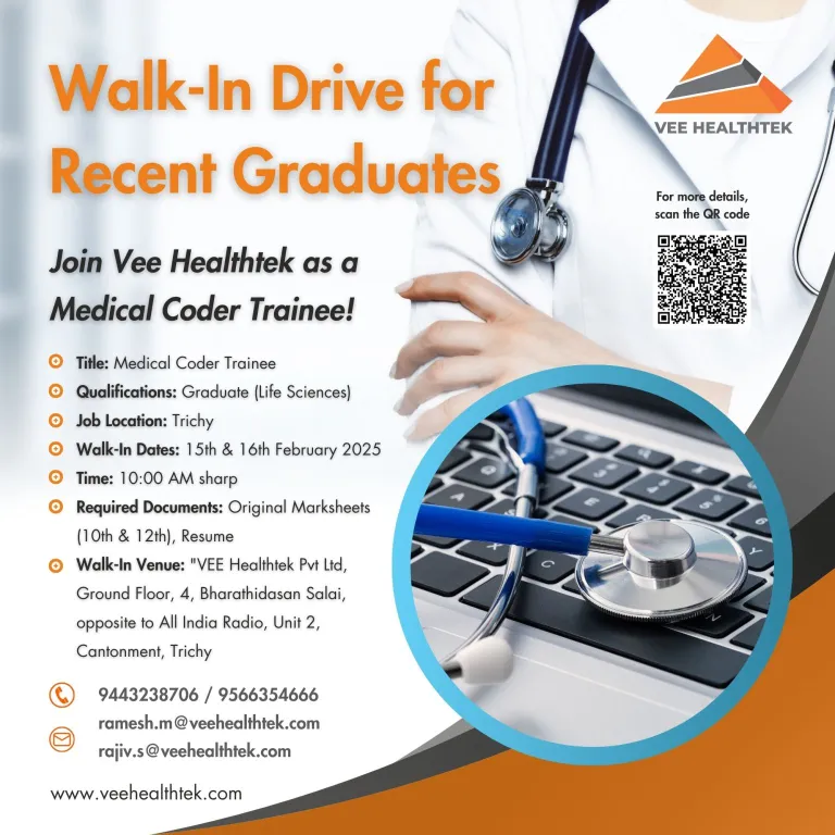 - Venue: Vee Healthtek Pvt Ltd, Ground Floor, 4, Bharathidasan Salai, opposite to All India Radio, Unit 2, Cantonment, Trichy.