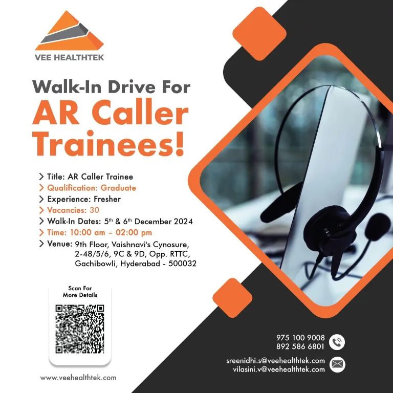 - Venue: Vee Healthtek, 9th Floor, Vaishnavi’s Cynosure, 2-48/5/6, 9C & 9D, Gachibowli Rd, Opp. RTTC, Telecom Nagar Extension, Gachibowli, Hyderabad, Telangana – 500032