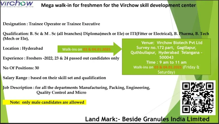 • Venue: Virchow Biotech Pvt. Ltd, Survey no.172 part, Gagillapur,