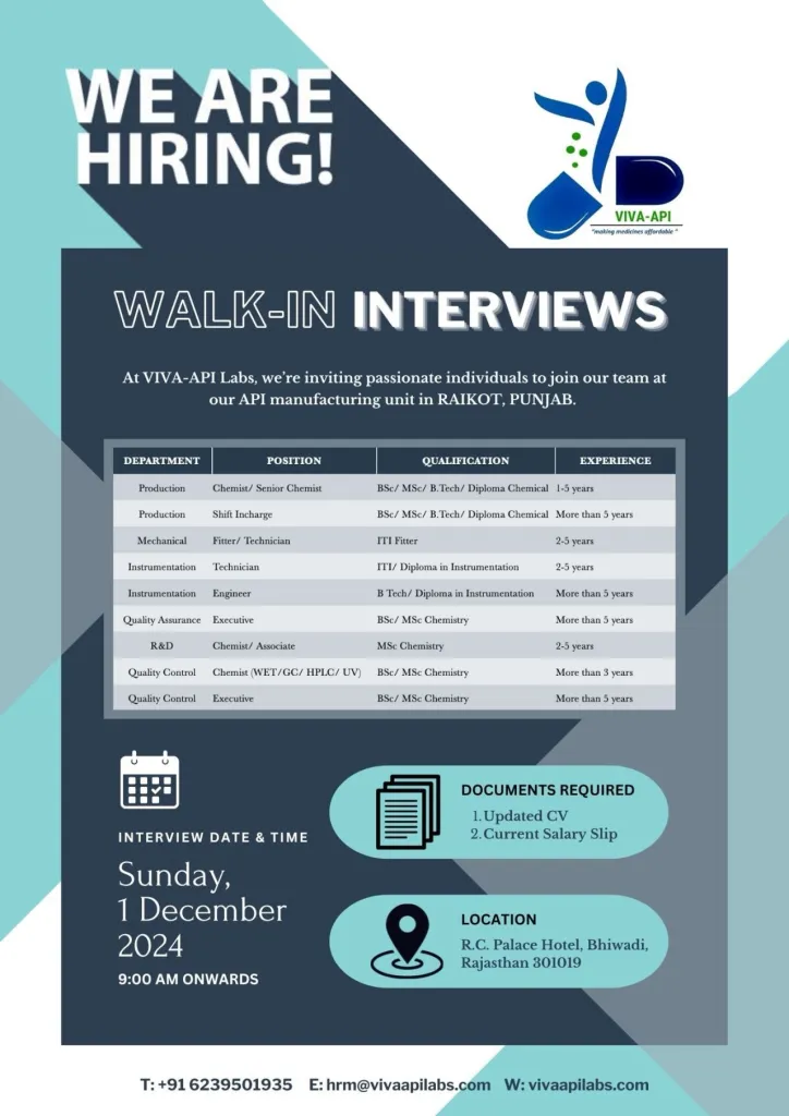 - Designation: Chemist, Sr. Chemist, Executives, Technician, Shift Incharge