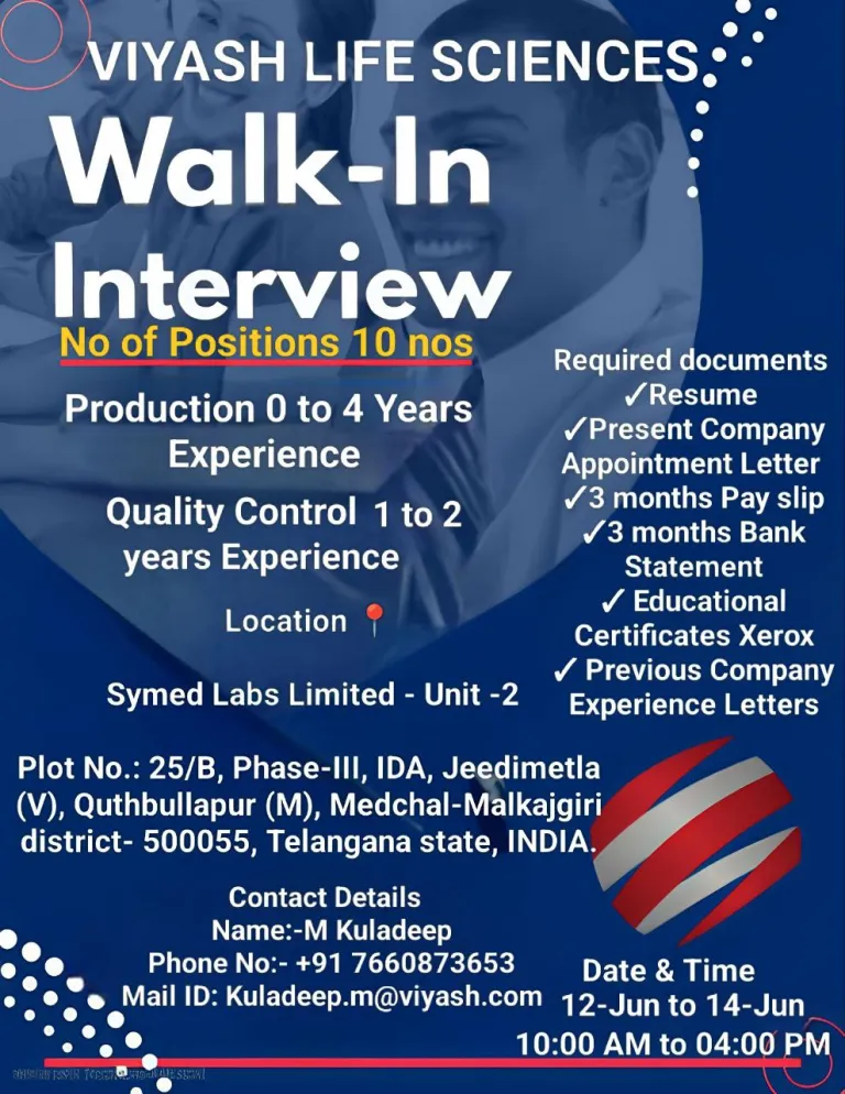 VENUE: Symed Labs Ltd- Unit-2 Plot No 25/B,Phase-III,IDA Jeedimetla Quthbullapur