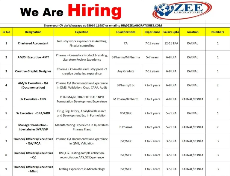 - Qualification : Bsc,Msc,Bpharm,Mpharm,Any Graduate,CA