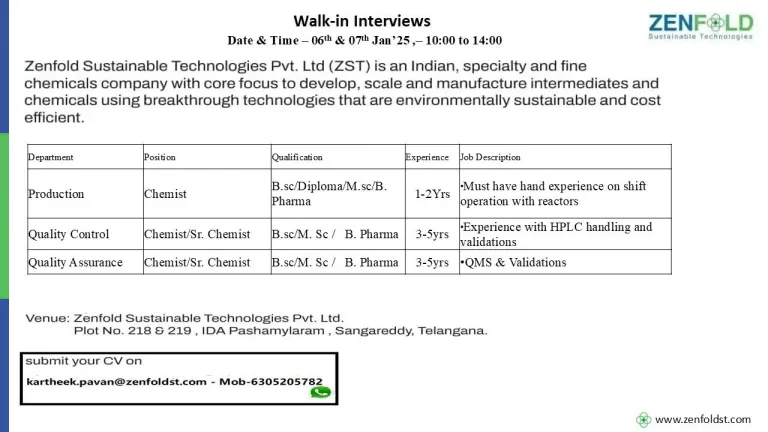 - Venue: Zenfold Sustainable Technologies Pvt. Ltd. Plot No. 218 & 219, IDA Pashamylaram, Sangareddy, Telangana.